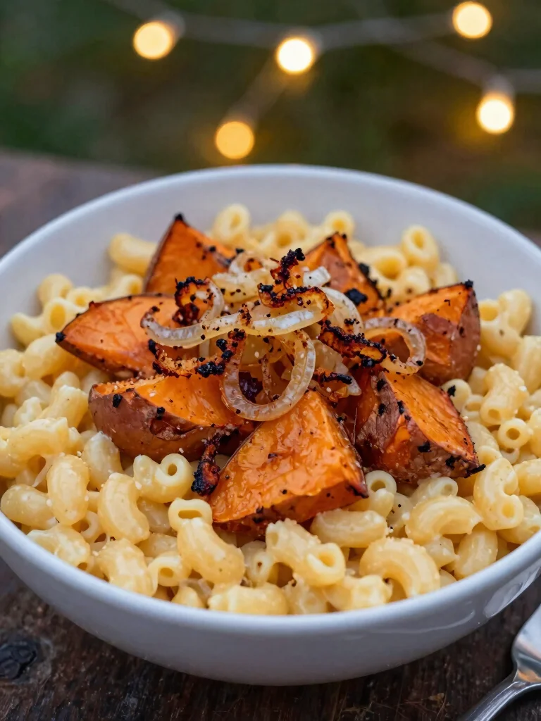 Experience a delicious twist by combining the sweetness of roasted sweet potatoes with creamy mac and cheese. This unique flavor pairing is both comforting and nutritious.