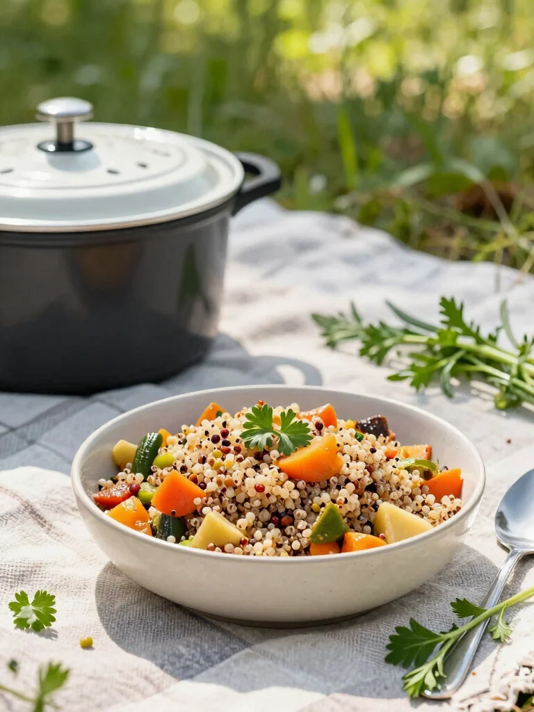 Searching for a nutritious meatless meal? This vegetable and quinoa stew offers a hearty and wholesome option that’s full of flavor. Loaded with colorful veggies and protein-rich quinoa, it’s not only comforting but also a delightful way to fuel your outdoor adventures. Plus, it’s simple to make, ensuring you spend more time enjoying nature.