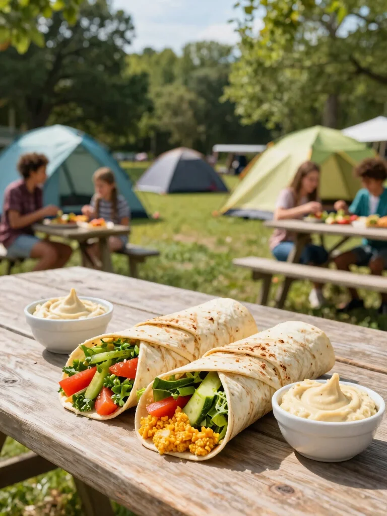 Veggie and hummus wraps are perfect for a light and healthy camping dinner. They require no cooking, making them a great option after a long day outdoors. Just spread hummus on a tortilla, add your favorite veggies, and roll it up! These wraps are refreshing, satisfying, and can be customized to your liking.