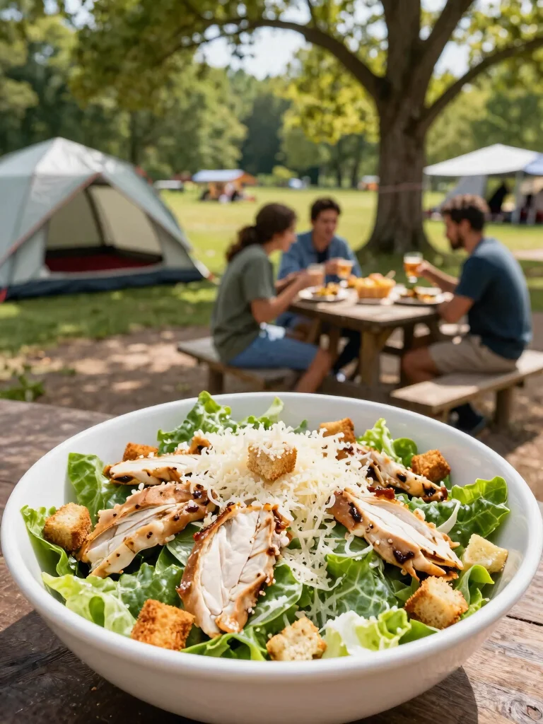 A chicken Caesar salad is a light yet satisfying option for camping. It’s super simple to prepare and doesn’t require any cooking. Just toss together pre-cooked chicken, romaine lettuce, Caesar dressing, and croutons for a refreshing meal. It’s perfect for warm days when you want something quick without the hassle!