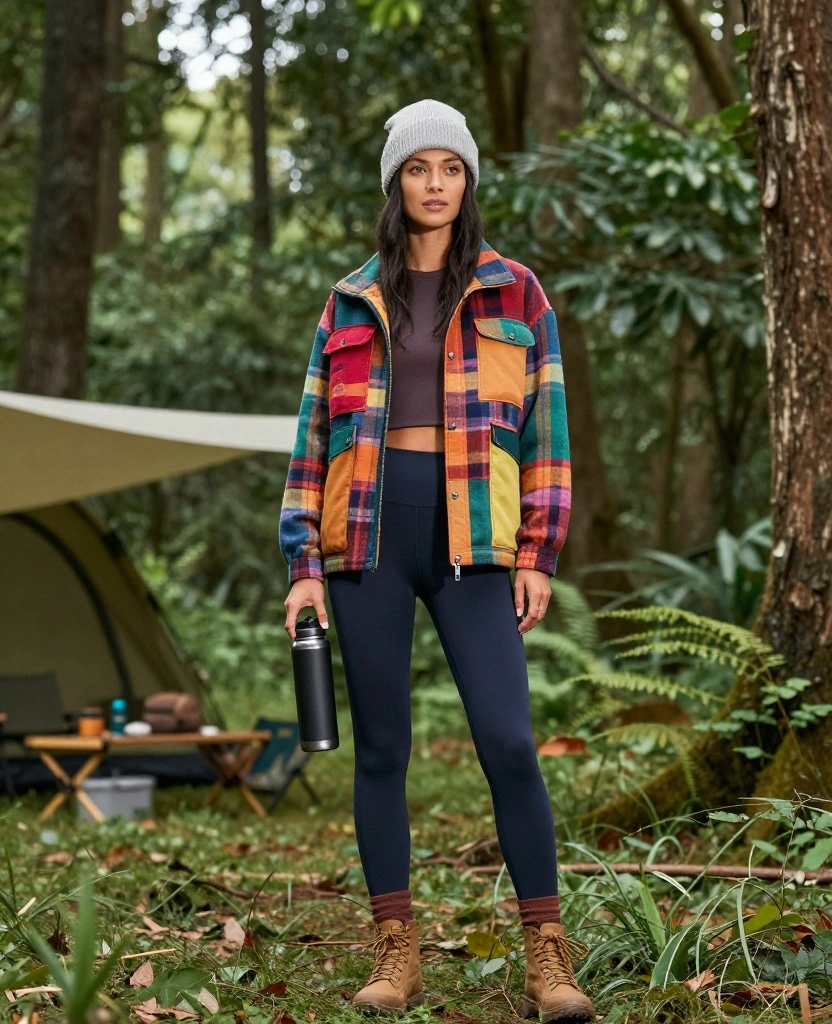 Layering is essential for camping, especially when temperatures fluctuate. A soft flannel shirt layered with high-waisted leggings combines warmth with effortless style. Opt for organic cotton or bamboo for a sustainable twist, and tie the flannel around your waist during hikes for added practicality.