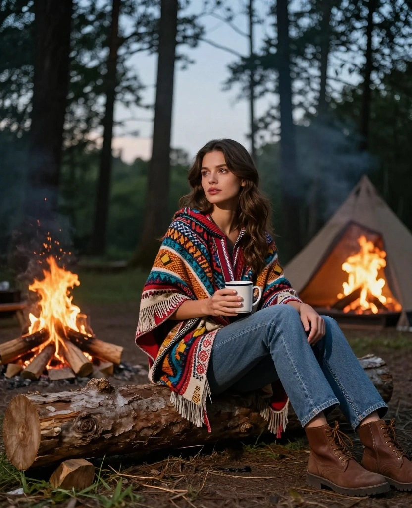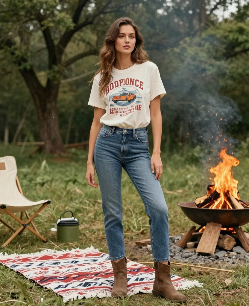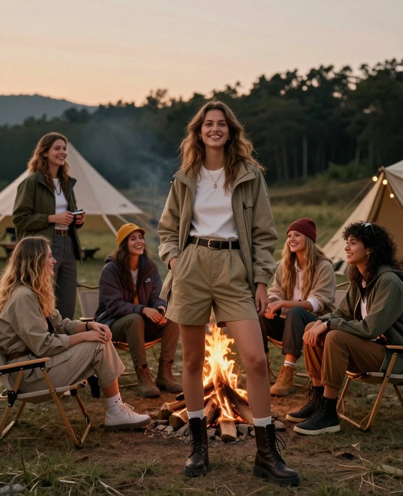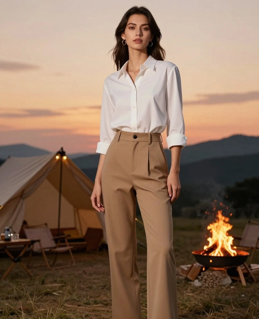 This outfit is versatile, perfect for both casual outings and stylish dinners, allowing you to enjoy your camping experience while looking great.