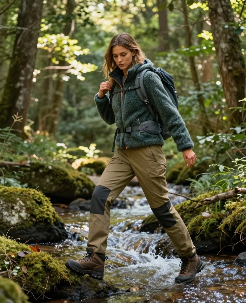 This outfit is perfect for outdoor adventures, keeping you stylish and prepared.