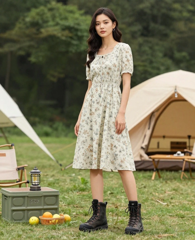 For a feminine touch, consider a stylish outdoor dress paired with fashionable hiking boots. This combination offers ease of movement while keeping you chic and put-together. Look for dresses made from breathable, quick-drying fabrics, perfect for transitioning from the trails to dinner at the campsite.