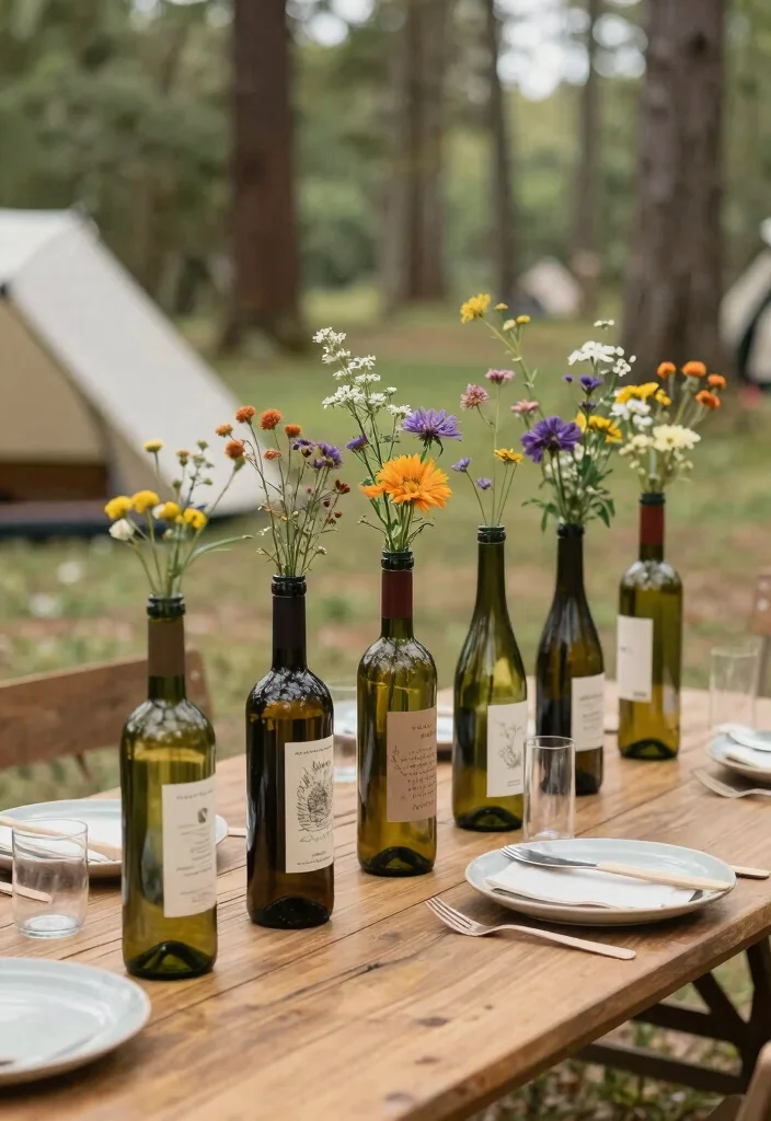 Old wine bottles can serve multiple purposes while camping. Use them as vases, or to hold cooking oil, vinegar, or sauces, adding a touch of elegance to your campsite. This eco-friendly hack promotes recycling and saves space in your backpack.