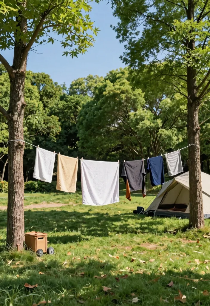 Keeping your campsite organized can be challenging, but a simple clothesline makes it much easier. Stretch a line between two trees and use clothespins to hang towels, wet clothes, or gear. This helps keep everything off the ground, reducing dirt and dampness while promoting a tidy environment.