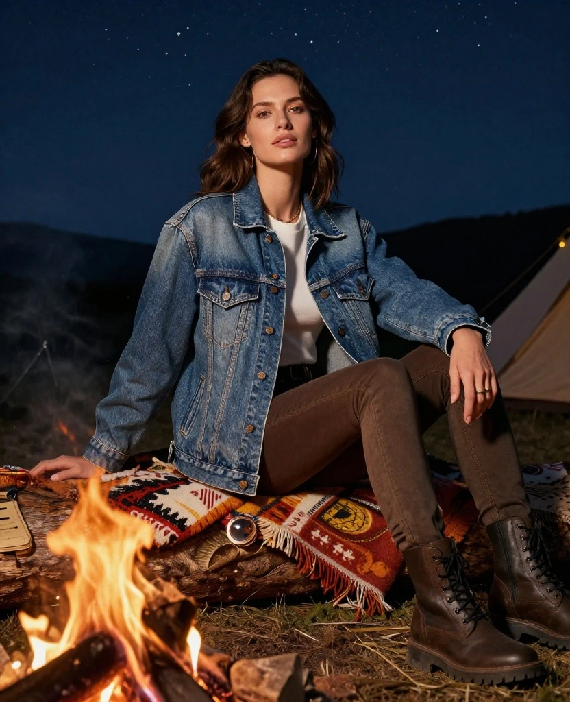 This outfit is perfect for campfire gatherings, casual hikes, or late-night chats under the stars. Swap the boots for slip-ons if you’re heading for a relaxed evening vibe.