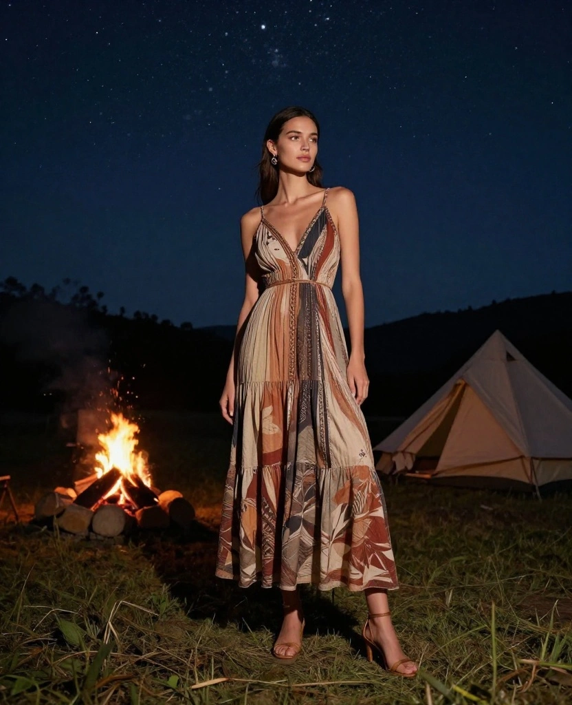 Choose breezy maxi dresses that can easily transition from daytime hiking to evening bonfires for a chic look.