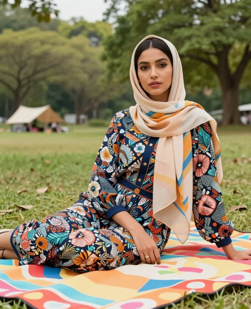 Camping offers the perfect chance to express your creativity through bohemian style. A flowing maxi dress or tunic, paired with wide-leg pants, creates a relaxed yet chic look. Choose a hijab that reflects your unique style, whether it’s floral patterns or rich, deep colors.