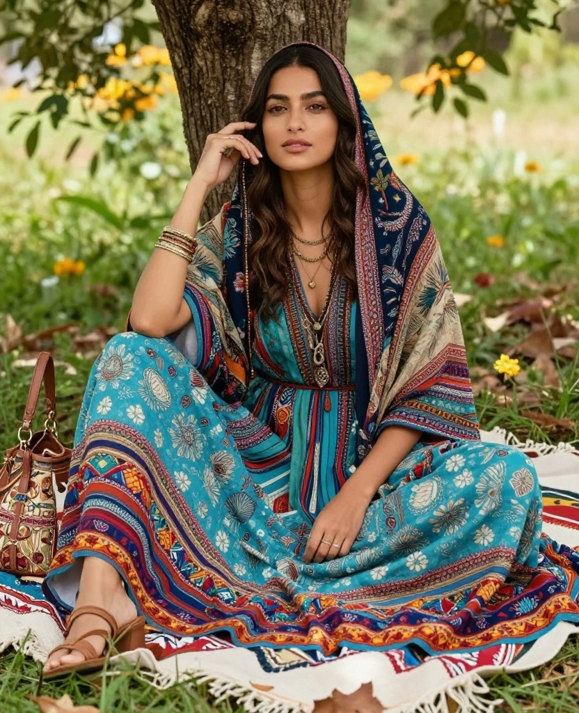Accessorizing with a slouchy bag and layered necklaces completes this bohemian ensemble. Comfortable sandals enhance the laid-back vibe, keeping your feet cool and stylish.