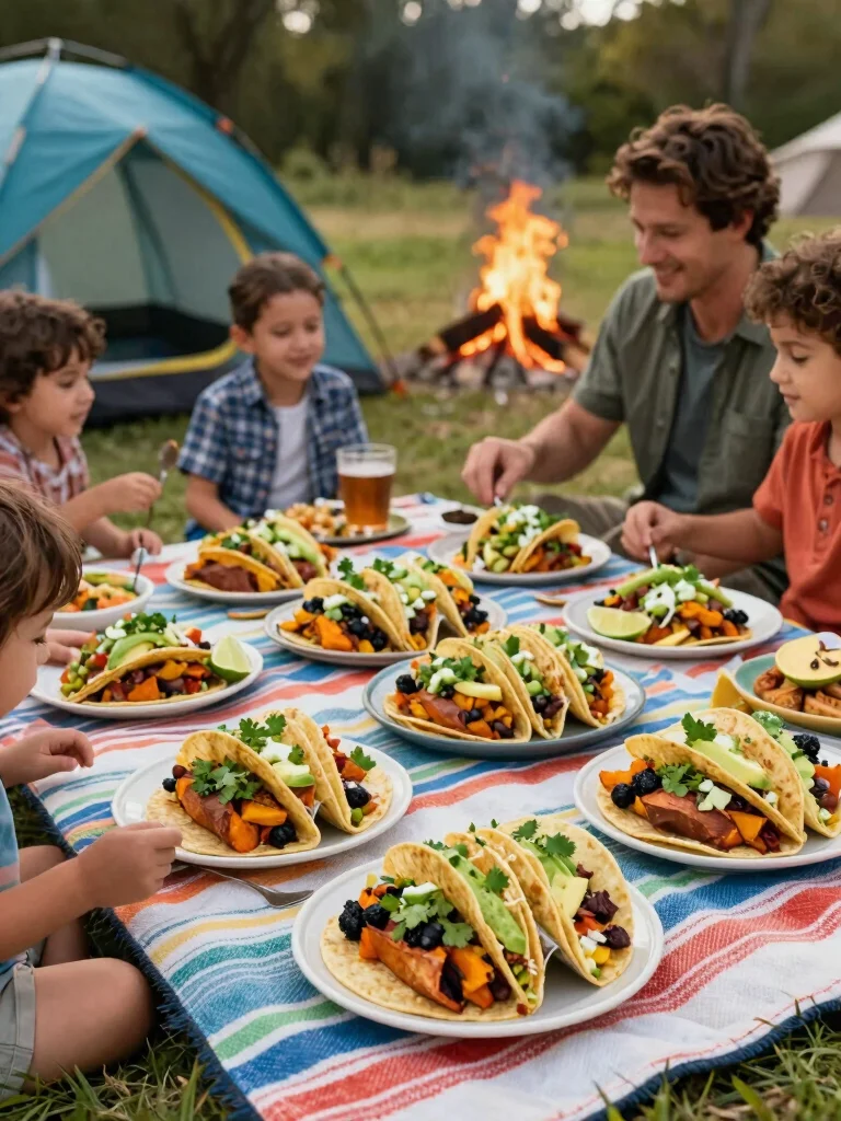 For a nutritious and satisfying meal, try sweet potato and black bean tacos! These tacos are fun to assemble and bursting with flavor. They’re a great meat-free option that will still satisfy everyone’s appetite after a long day outdoors.