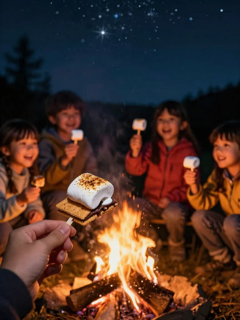 1. Roast marshmallows over the campfire until golden brown.