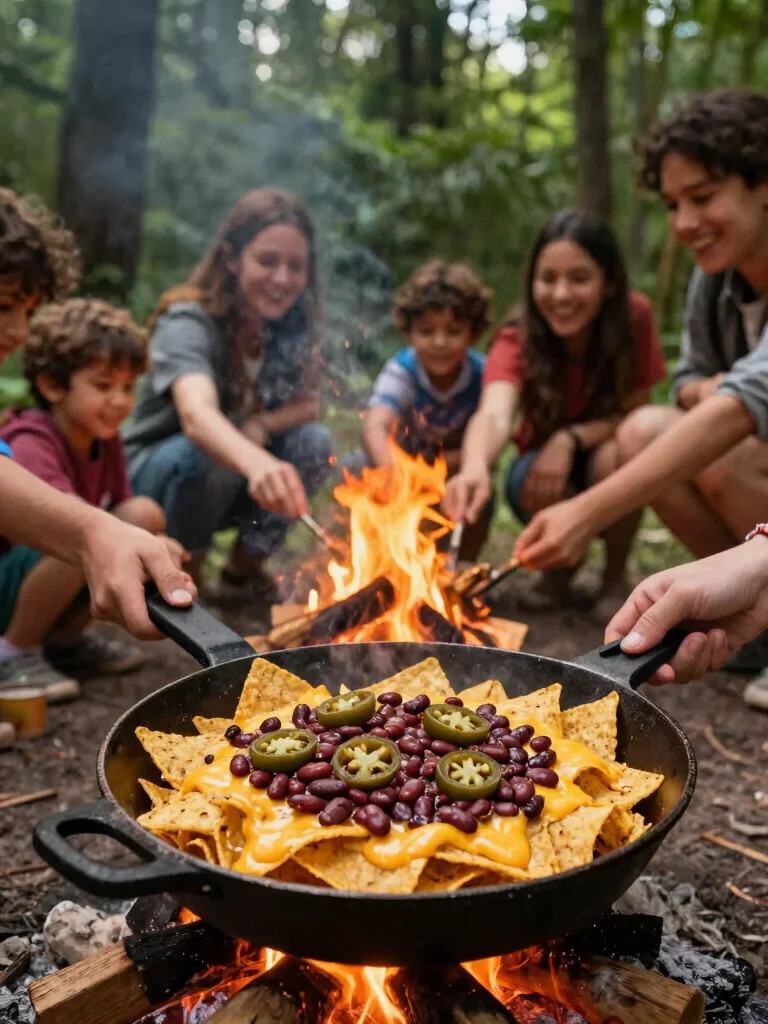Want to indulge in a cheesy treat while camping? Easy campfire nachos are the way to go! Layering tortilla chips with cheese, beans, and your favorite toppings before heating them over the fire creates a delicious snack that everyone will enjoy sharing.