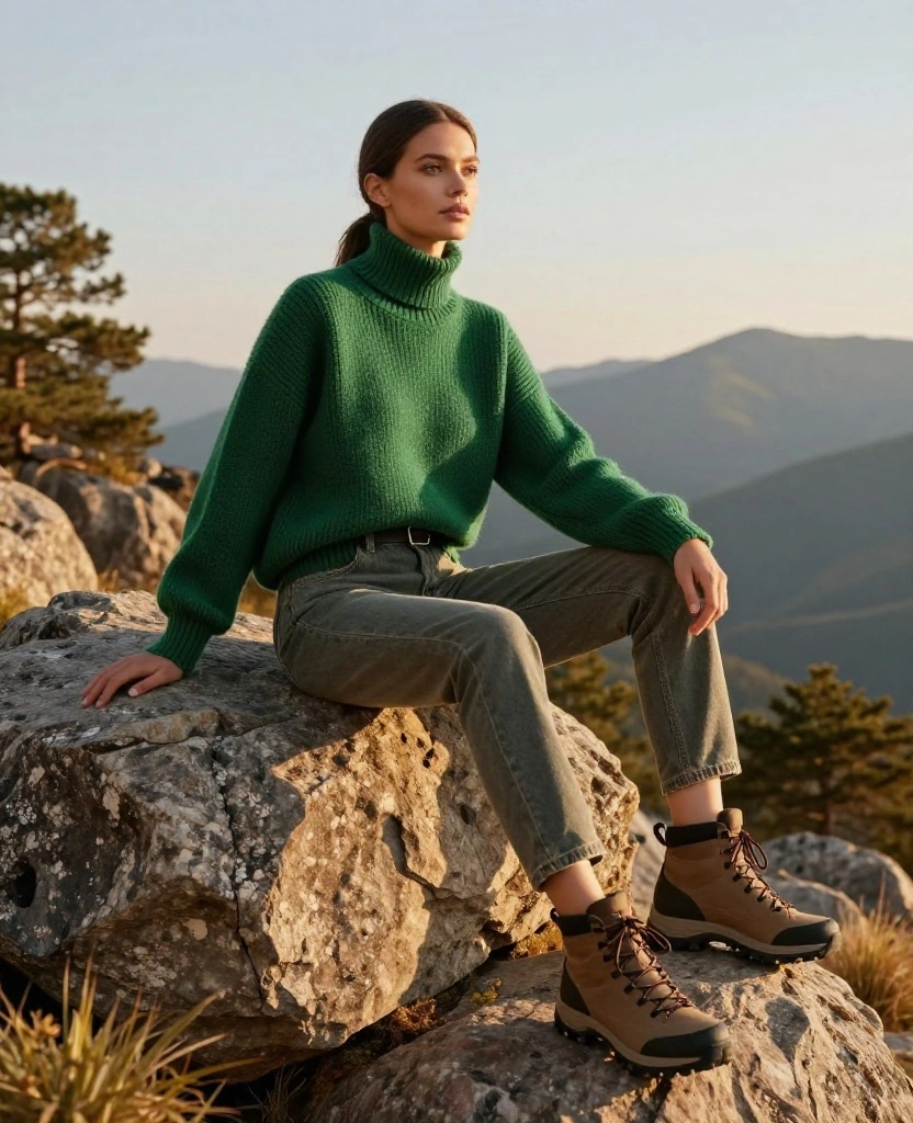 For bottoms, high-waisted jeans or leggings provide comfort during hikes. This outfit is both practical and stylish, allowing for a seamless transition from outdoor activities to evening gatherings.