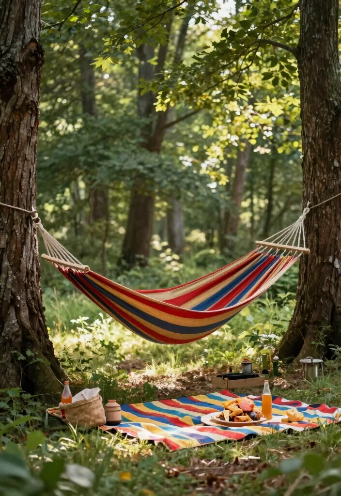 Consider chairs with shade features to enhance your comfort on sunny days. A hammock is another great alternative for lounging outdoors! Set them up wherever you like, whether near the fire or under a shady tree.