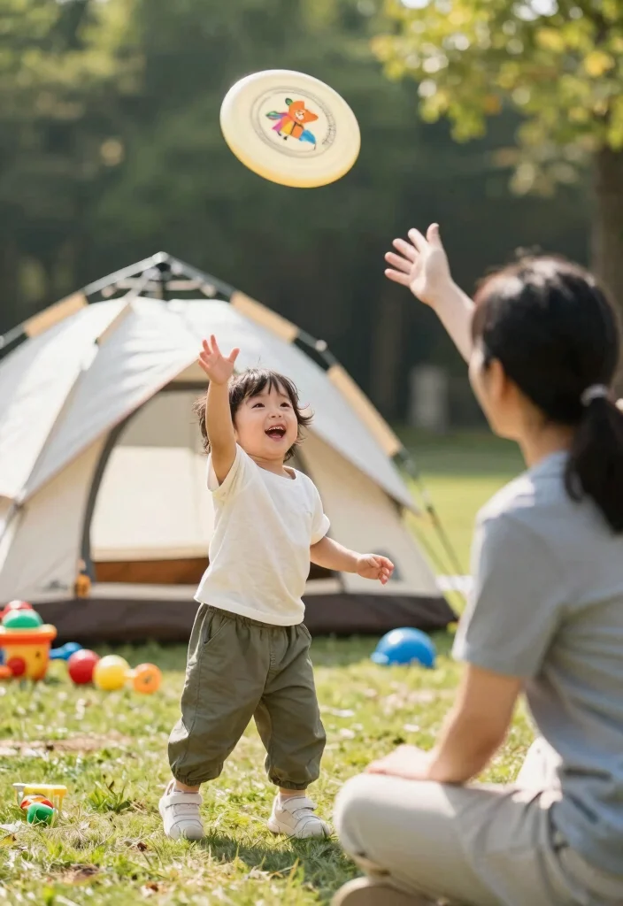 Keep your toddler camping essentials simple and packable. Lightweight toys like a frisbee or ball turn any campsite into a play zone, keeping them engaged and happy—great for short excursions, long hikes, and quick, shared family moments.