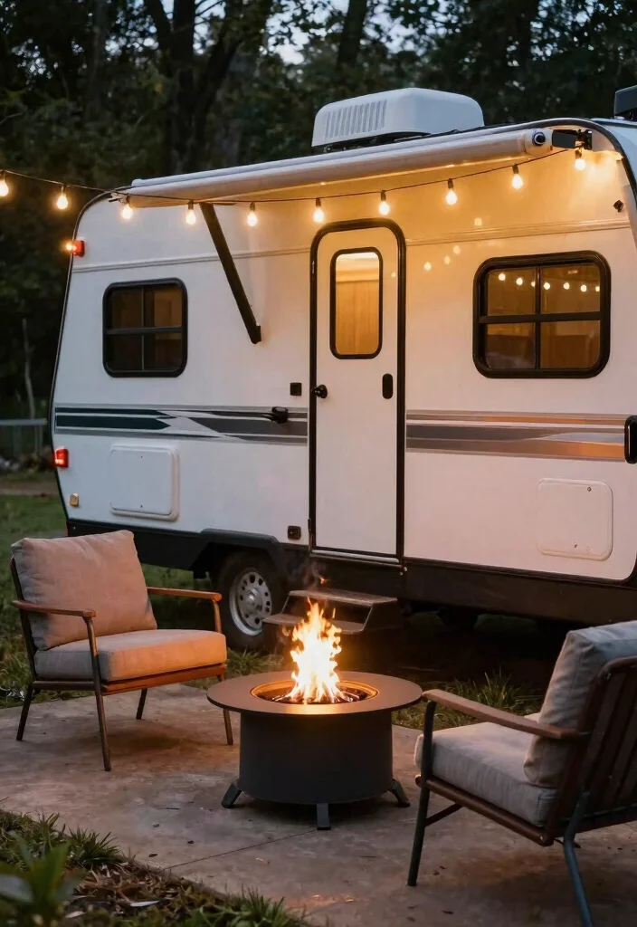 Enhancing the area around your travel trailer can create a cozy outdoor living space. Add features like a portable fire pit, comfortable chairs, and a small table to make it inviting for entertaining.