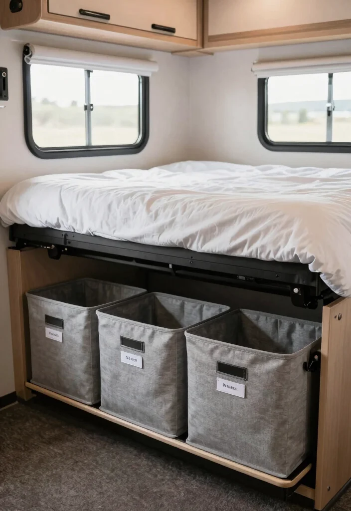 Don’t overlook the valuable storage space under your bed! This area can be perfect for stashing away clothes, gear, or anything else you may not need daily. Investing in storage bins that slide easily under the bed allows for quick access and keeps your living area clean.