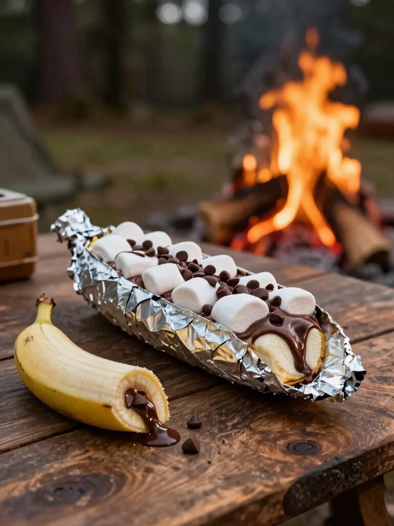 Chocolate Banana Boats are the ultimate camping dessert, combining the sweetness of ripe bananas with melted chocolate. This fun and easy treat is sure to delight both kids and adults! Simply slice a banana down the middle (keeping the peel on), stuff it with chocolate chips and marshmallows, and wrap it in foil.