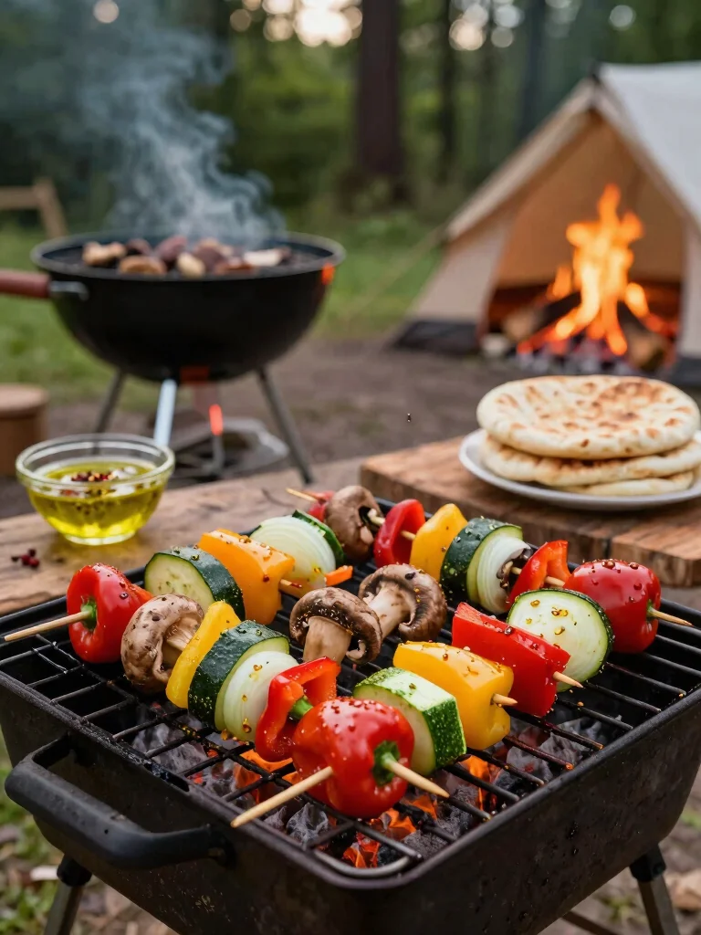 Grill a variety of vegetables on skewers for a customizable and delicious camping meal.